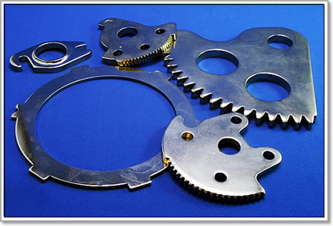 用精冲(Fine blanking)专用油压式冲压机、或一般冲压机加上配套专用油压装置的模具。